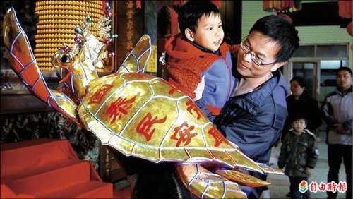 〔自由時報記者劉禹慶/澎湖報導〕澎湖黃金龜王之爭越演越烈!今年鎖港北極殿兩百三十兩黃金龜王,增加為兩百五十兩;而強敵山水上帝廟金靈龜,也增長為兩百一十三.八兩,身價雙雙破千萬元。巧合的是,去年兩大黃金龜王得主都是海運公司老闆,龜戲水成為趣談。