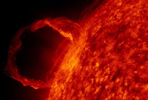 日冕物質拋射是太陽爆發的一種,這種現象發生時,太陽大氣層中會有幾十億噸的物質被高速拋射到太空中,如果拋射方向正好朝向地球,會在地球大氣層中引發強烈磁暴,從而破壞電力系統、通信設施等。這種劇烈的太陽活動還會損壞地球同步衛星,並使得太空中的太空人暴露在強烈的輻射之下。
