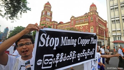 緬甸示威者在西北部反對一座中緬合資銅礦場擴建的抗爭行動,演變成流血事件。就在反對派領袖翁山蘇姬準備到現場與示威者見面之前數小時,防暴警察於周四 (29日) 凌晨發射燃燒彈、催淚彈、水炮清場,驅散群眾,至少 50 人受傷。